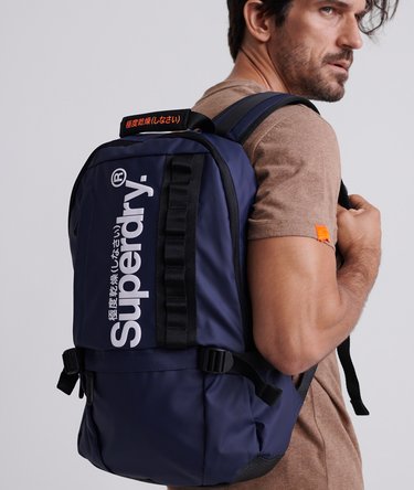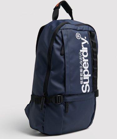 Mochila fina de lona de Superdry para hombre. Esta práctica y estilizada mochila dispone de varios compartimentos multifunción, como una funda acolchada para portátiles de hasta 16" con correa de velcro y un bolsillo interior de malla. En la parte delantera, incluye un bolsillo grande y otro pequeño con cremallera. Para mayor comodidad, la mochila tiene un panel de ventilación en la espalda y correas ajustables y acolchadas ara los hombros, que se pueden asegurar alrededor del cuerpo con un clip ajustable. Se completa con asa acolchada con detalles japoneses y tiradores de ajuste laterales para asegurar el contenido de la mochila. Se completa con un logo de Superdry estampado y el emblema de la marca en los tiradores de las cremalleras.