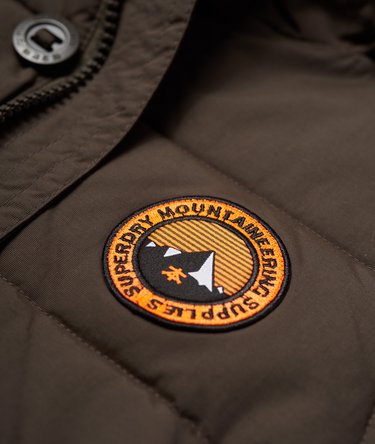 Chaleco Everest de Superdry para hombre. Este chaleco clásico debe su calidez tanto a su diseño guateado y capucha como a su forro integral. El chaleco se presenta con un cierre delantero de cremallera y botón, botones automáticos adicionales para asegurar la capucha, dos bolsillos externos con cierre de botón y práctica capucha extraíble. El toque final de este chaleco Everest lo pone un parche con el logo de Superdry Mountain en el pecho.