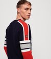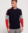 Jersey de cuello redondo Track de Superdry para hombre. Este jersey de cuello redondo presenta diseño a rayas en las mangas, logo de Superdry en relieve en la parte delantera y ribetes de punto elástico acanalado. Completa con una etiqueta con el logo de la marca en el bajo, combina bien con vaqueros ajustados y zapatillas deportivas.