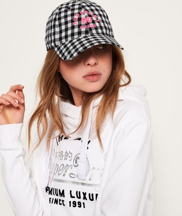 Gorra de cuadros de Superdry para mujer. Esta gorra de diseño clásico tiene un cierre en la parte posterior y un acabado con el logotipo bordado de Superdry en la parte delantera.