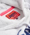 Sudadera con capucha Surf Club Entry de Superdry para mujer. Una sudadera clásica de tipo jersey con un estampado de purpurina de Superdry con "Surf Club" estampado por debajo y dos rayas en ambas mangas. También lleva un bolsillo parche delantero y se completa con una placa del logo de Superdry en el bolsillo y una etiqueta del logo en una de las mangas.