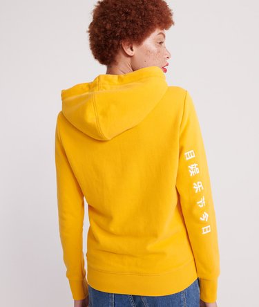 Sudadera con capucha y brillo Premium Goods de Superdry para mujer. Esta sudadera sin cierre incluye capucha con cordón de ajuste, bolsillo canguro delantero y un diseño con el logo con textura en el pecho. También cuenta con el emblema de Superdry con textura en una manga y se completa con una etiqueta con el logo en la costura lateral.