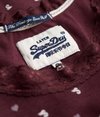 Camiseta de tirantes Vintage Lace Printed de Superdry para mujer. Una camiseta de tirantes ajustada de tejido jersey elástico, estampada y con ribetes de encaje de estilo vintage. Se completa con un parche del logo de Superdry por encima del bajo.